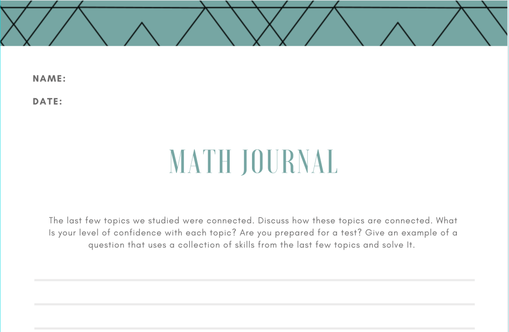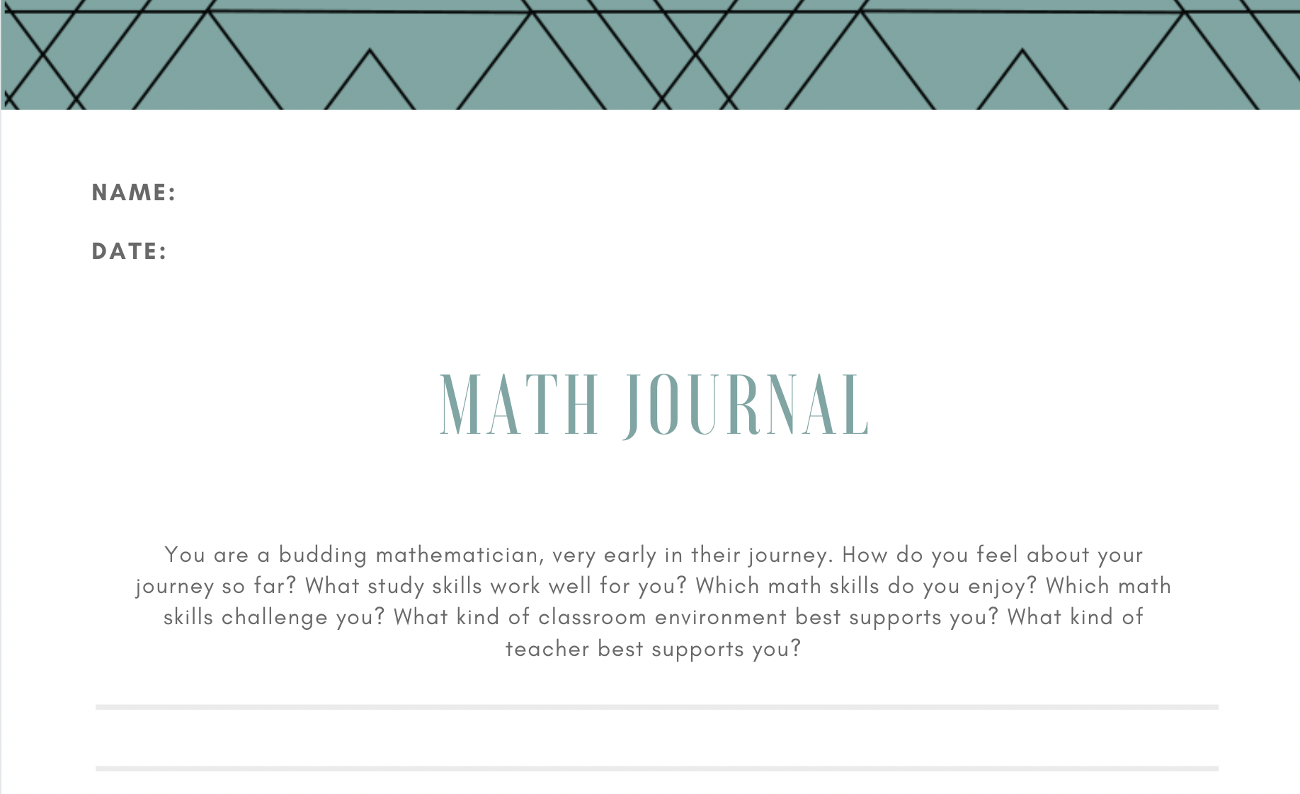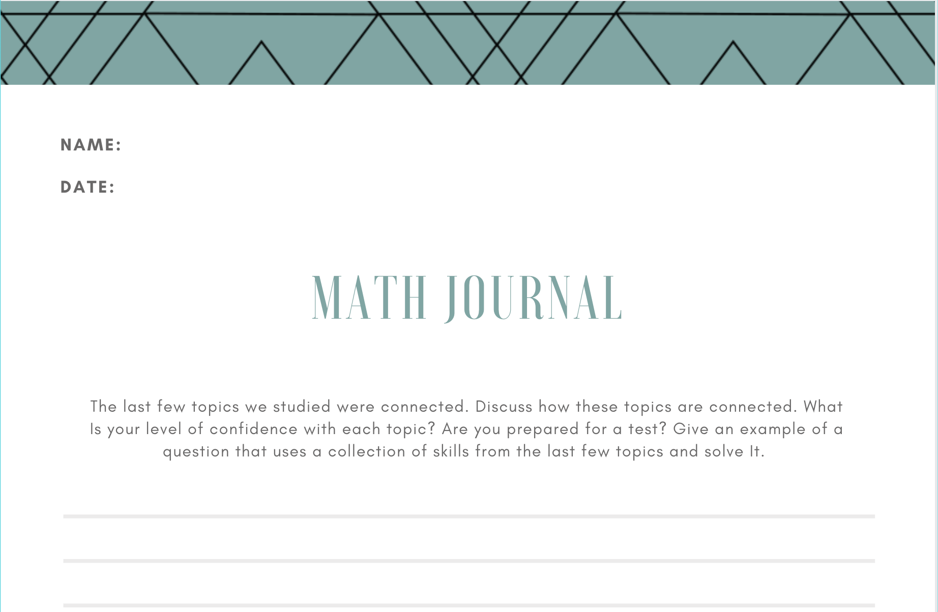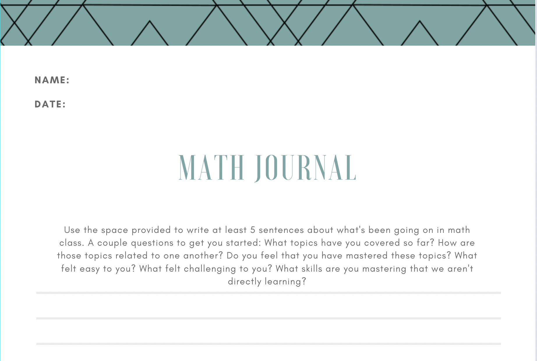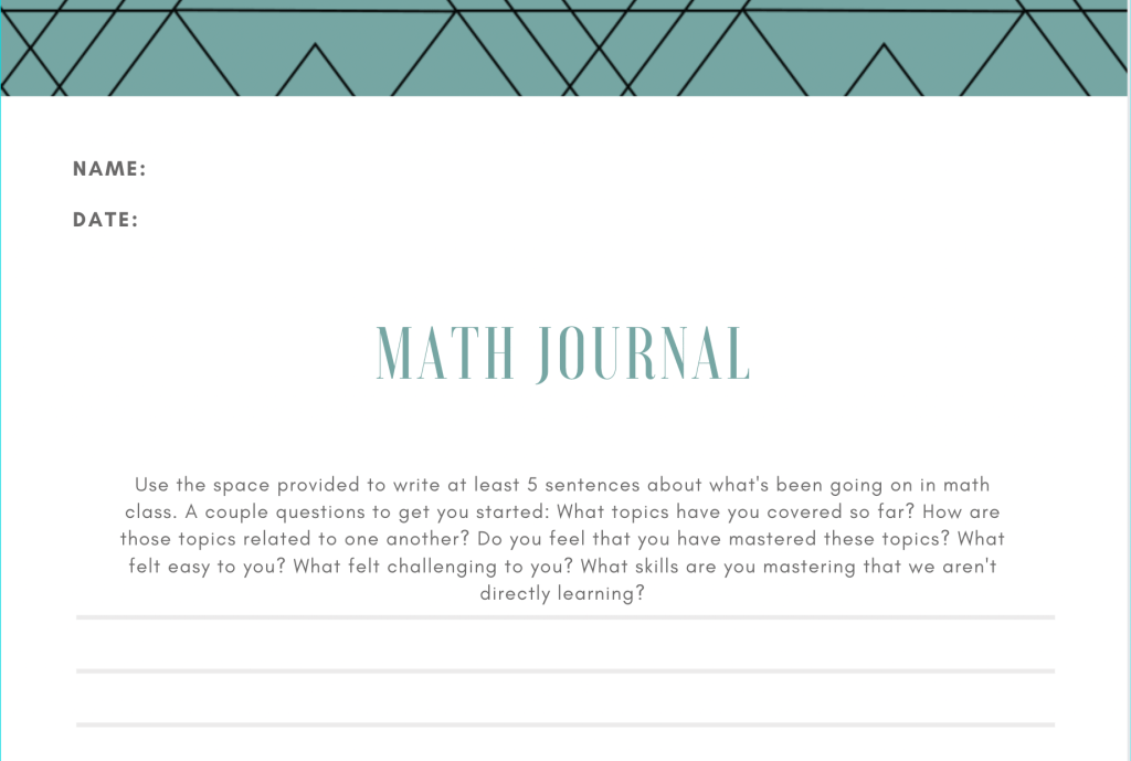 - A math journal with prompts laid out by the teacher can help students develop a mathematical identity. Or rather, can help students realize that they have a mathematical identity! Having students reflect on their learning shows that they may have a responsibility to themselves, for example, if a student finds that they learn best with visualizations, they now know that they should ask you to draw a picture. For students in individually paced learning situations like homeschool environments or working on asynchronous assignments, they know to look for visual resources for extra support with their curriculum.