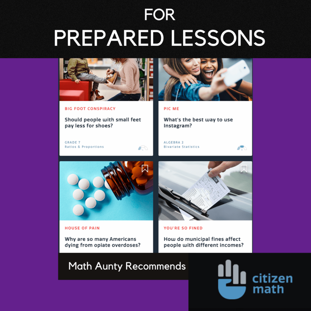 Citizen Math has been around for some time and used to be called Mathalicious. When I first started teaching, I used Mathalicious for inspiration when I wanted to create a real world based project for students – they had a collection of math projects organized by grade that were their own material or resources from other places.